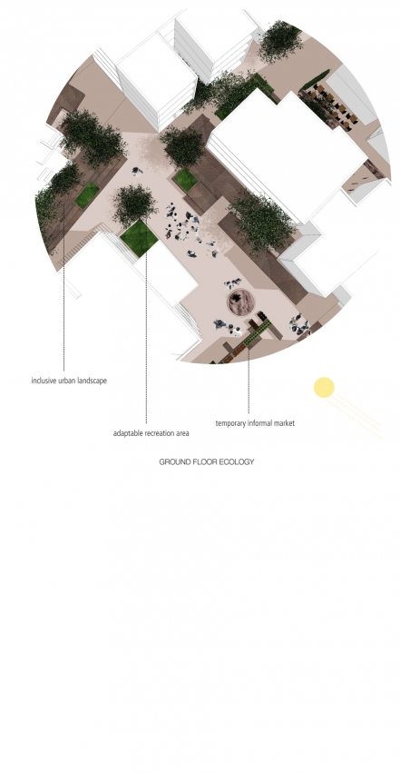 This new ecology, geared towards a more sustainable, adaptable, and inclusive ecosystem is driven by simple strategies of spatial appropriation. Building on our site observations and existing social practices, we would envisage multiple possibilities for strategic intervention and future development.